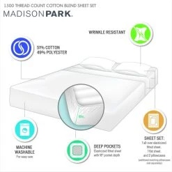 Outlet π Madison Park 1500 Thread Count Cotton Blend 4 PC Sheet Set Blue β¨