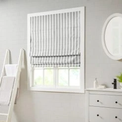 Promo π Madison Park Hampton Yarn Dyed Striped Light Filtering Cordless Roman Shade Taupe π