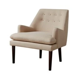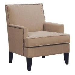 Outlet β€οΈ Madison Park Samantha Beige Upholstered Open Arm Metal Leg Accent Chair π§¨