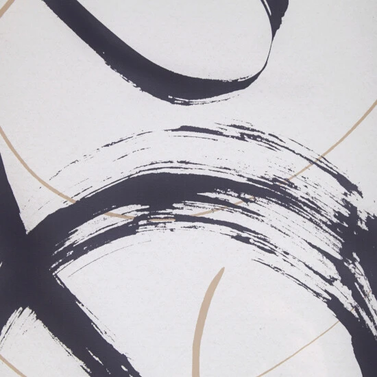 - Bold black and matte gold tone brushstrokes on a light neutral ground