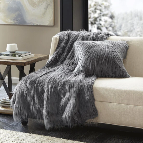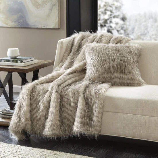 Bring cozy style to your living space with this eye-catching faux fur throw. The throw is crafted from a blend of acrylic and polyester, and features a shaggy front and a faux mink back for a glam look and a soft feel. Perfect for all seasons, this throw blanket comes in a variety of stylish colors to best fit your decor.
