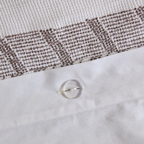 - Printed cotton waffle with chenille trim face, cotton solid back duvet and shams