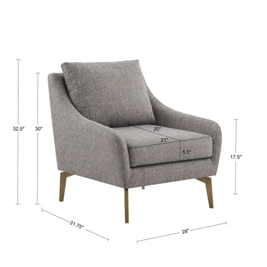 Complete your living room decor set with the Madison Park Arlene Accent Chair. This accent chair is upholstered in a multi-hued brown fabric with a removable back and seat cushion that provides exceptional comfort and support. The bronze metal legs complement the upholstery to create a stunning transitional look. Leg assembly is required and a tool is included.Β