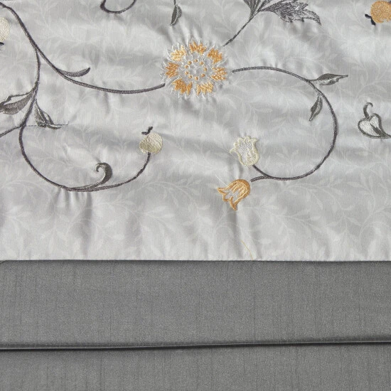 Uplift your spirits with Madison Park’s Belle seven-piece comforter set featuring yellow and grey tones. Embroidered floral details create a sophisticated vibe, while the faux silk material adds elegance. The comforter, two matching shams, bedskirt, and three decorative pillows give your bedroom a well-put-together look.