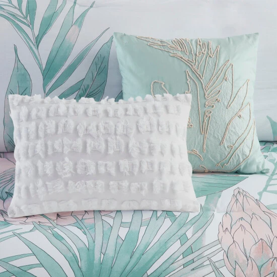 - Embroidered and tufted deccorative pillow details