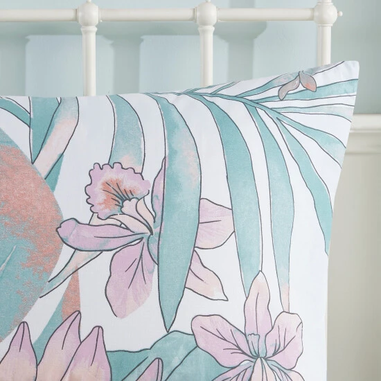 Create a serene atmosphere in your bedroom with the Madison Park Bonnet 8 Piece Cotton Printed Comforter Set. The white cotton comforter features a large botanical design in a soft and romantic color combination, for a shabby chic look. A solid aqua reverse complements the top of the comforter, while the hypoallergenic polyester filling provides exceptional comfort. The 2 matching shams also showcase a floral print and 2 aqua Euro shams add another splash of soft color. Also included are 2 decorative pillows with embroidered details and a solid aqua bed skirt that add the finishing touches to the botanical comforter set. This cotton bedding set is also OEKO-TEX certified, meaning it does not contain any harmful substances or chemicals to ensure quality comfort and wellness.