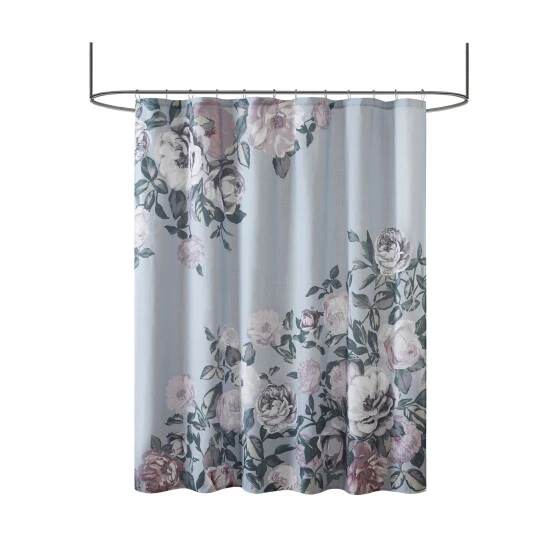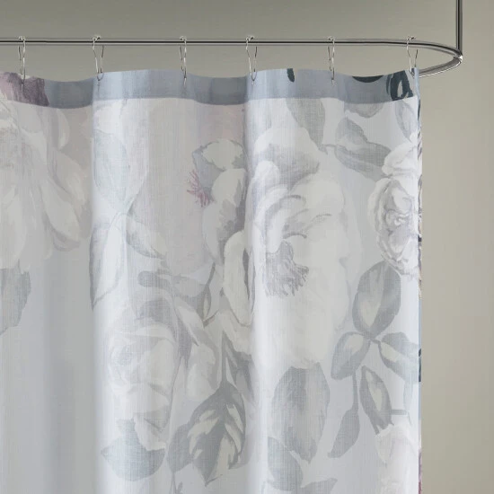 Bring style and life to your bathroom decor with the Madison Park Charlaine Cotton Floral Printed Shower Curtain. This shower curtain features a beautiful engineered floral design in feminine tones on a contrast ground, while the 100-percent cotton boucle slub fabric add a light texture and natural hand feel, for the perfect shabby chic and casual update. Achieving the OEKO-TEX certification, this shower curtain also does not contain any harmful substances or chemicals, ensuring quality comfort and wellness. Each shower curtain measures 72×72 inches and is finished with 12 button holes at the top to easily assemble onto hooks; hooks, rod, and water repellant liner are not included and should be purchased separately. Machine washable cold on gentle cycle with like colors.Β