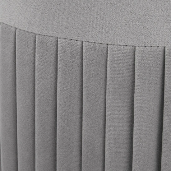 Add that perfect touch of elegance and sophistication to your home with the Madison Park Christel Accent Ottoman. This round ottoman is upholstered in rich velvet fabric with pleated fabric wrapped around the side, for a chic transitional look. Place this upholstered ottoman in your living room or bedroom to give your space a fashionable update. No assembly required.