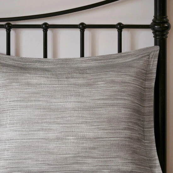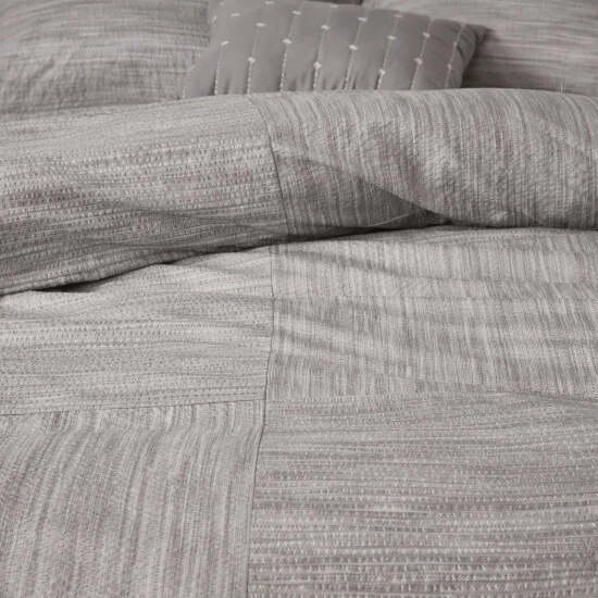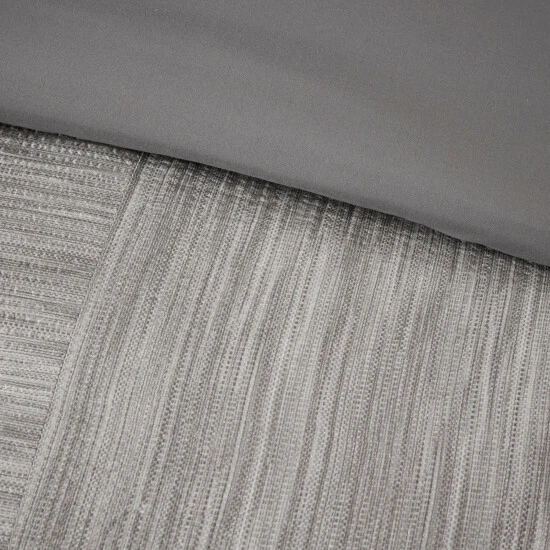 The Madison Park Clayton 7 Piece Printed Seersucker Comforter Set offers a chic modern update to your bedroom. Β This grey comforter set features a pieced, textured printed seersucker weave design for a updated transitional allure. Two matching shams repeat the style of the comforter, while two square pillows and one oblong decorative pillow add dimension and comfort to the bed. A solid grey bedskirt adds the finishing touch to complete the contemporary comforter set. Hypoallergenic polyester filling in the comforter and the pillows provides exceptional warmth and comfort. Transform your bedroom decor with the trendy style of this printed seersucker comforter set. Machine washable for easy care.