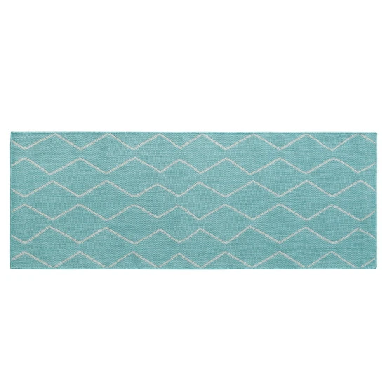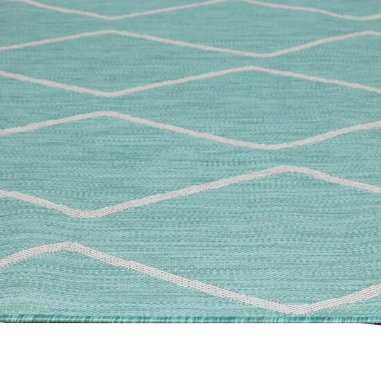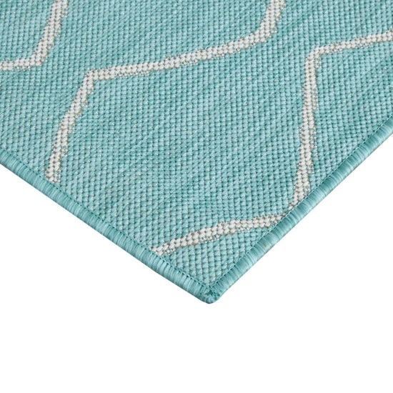 Bring a touch of style and color to your home with the Madison Park Cove Moroccan Tile Indoor/Outdoor Rug. This polypropylene flatweave area rug features a Moroccan tile pattern in aqua and white colors, creating a globally inspired look. Stain and fade resistant, this indoor/outdoor rug is durable for all seasons and easy to clean.
