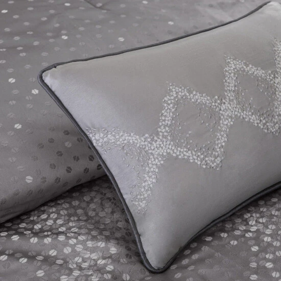 - Hypoallergenic polyester filling in the comforter and decorative pillows