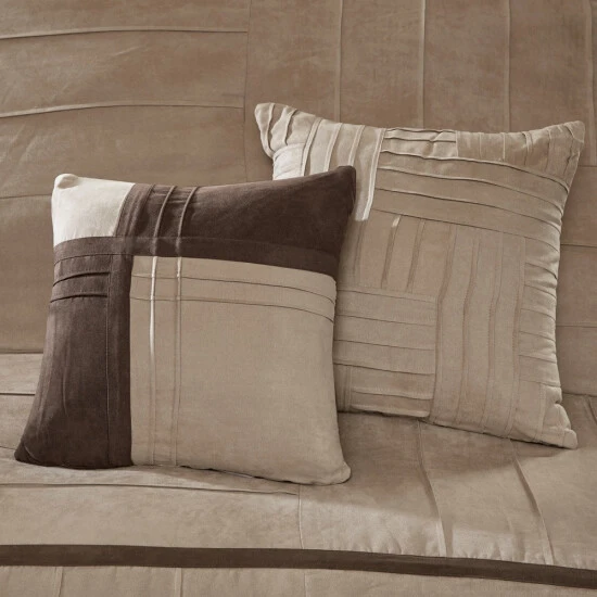 Change up the look of your bedroom with this contemporary comforter set. The pillows and bedding in the set all feature a neutral color scheme in beige and brown, introducing a clean and calm mood to your bedroom. Made from microfiber, the comforter set offers a soft, comfortable sleeping experience.