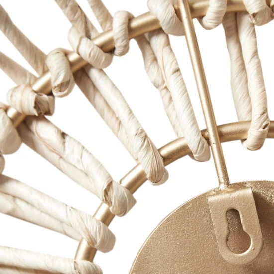 Accent your home decor with the natural boho touch of our Madison Park Ella Corn Husk Wrapped Metal Wall Decor 3 Piece Set. This 3 piece wall decor set features round iron frames wrapped in natural corn husks to create a unique and fresh look. Each wall decor comes in a different size with a mirror center and a keyhole hook fixture to make them easy to hang. Display this modern boho wall decor together or separately in your living room or kitchen to give your home a one-of-a-kind stylish update.