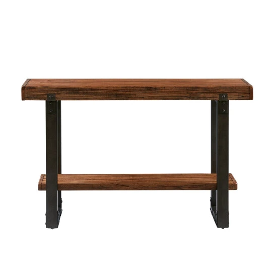 Breathe new life into your entryway with the Ellis console table from Madison Park. A charming piece to greet guests by your doorway, this console table emanates a warm and welcoming appeal with its two wooden shelves that don a natural finish for a rustic farmhouse look. The sides are made with gunmetal-finished parson frames for a dash of industrial grandeur.