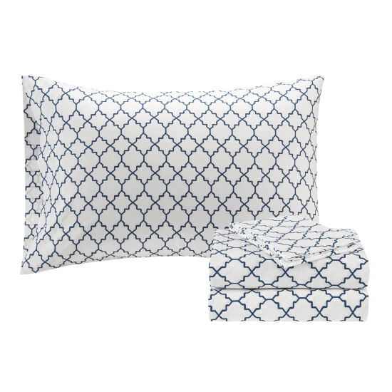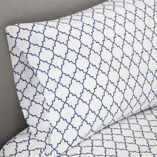 - Reversible contemporary all over fretwork design printed comforter set and cotton sheet set