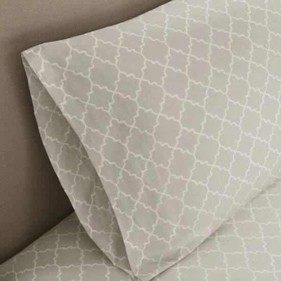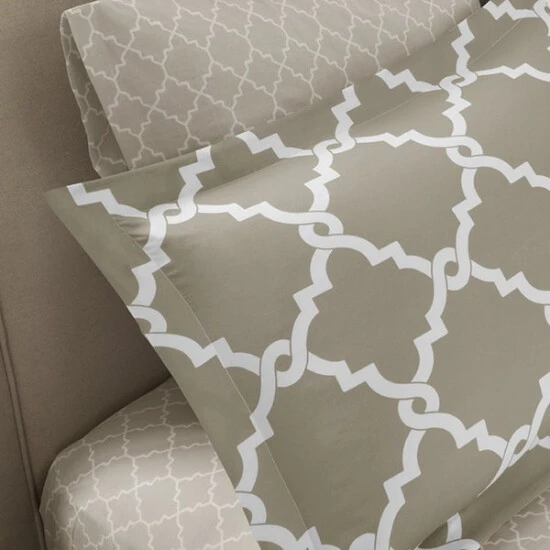 - Reversible contemporary all over fretwork design printed comforter set and cotton sheet set