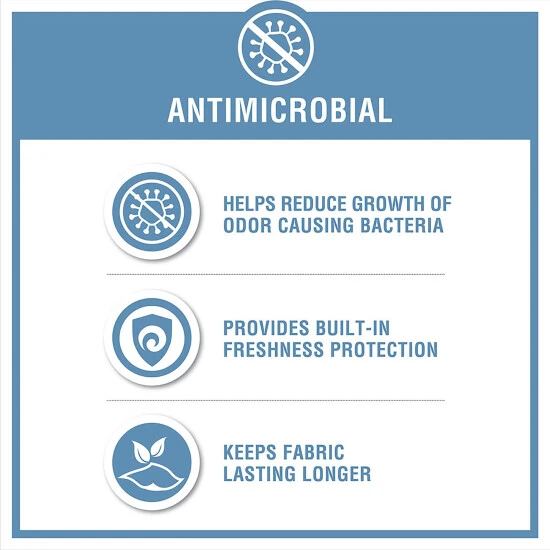 - Features an anti-microbial treatment for odor and bacteria control, which enhances hygiene and keeps the fabric fresher, longer