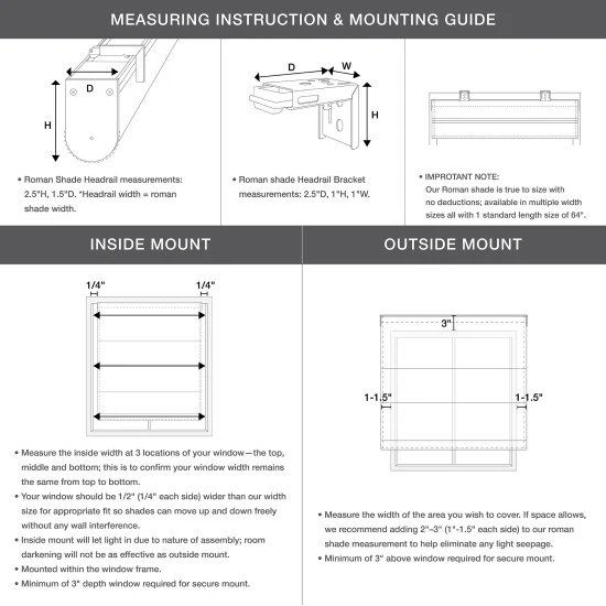 - Outside mount: please choose size with at least 3 inches add on to your actual window width; minimum of 3 inches above window required