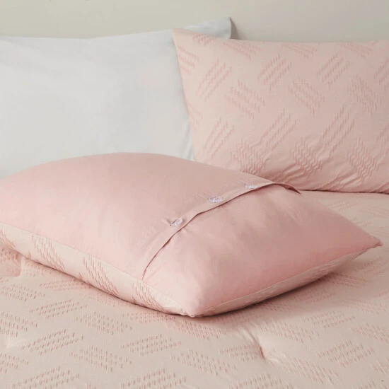 Find refreshing comfort with the unique charm of the Madison Park Harlow 4 Piece Organic Cotton Comforter Set. This GOTS certified organic cotton comforter features a textured pattern to create a contemporary casual look. The 2 matching shams also showcase yarn dyed stripes to complement the comforter, while a decorative pillow completes this casual bedding set. An antimicrobial treatment prevents bacteria buildup for odor control, keeping the fabric fresher, longer. This modern bedding set is also OEKO-TEX certified, meaning it does not contain any harmful substances or chemicals to ensure quality comfort and wellness.