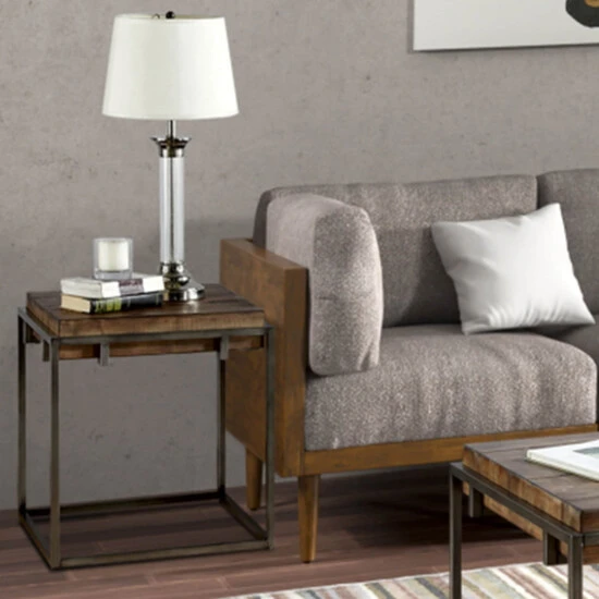Simple In Design, The Madison Park Harrison End Table Offers A Chic Rustic Update To Your Living Room Decor. This Rectangular End Table Features A Distressed Walnut Butcher Block Top That Creates A Charming Farmhouse Look. The Iron Finish On The Metal Base Complements The Table Top To Complete The Design. Elevate Your Living Space By Incorporating This End Table Into Your Home Decor.