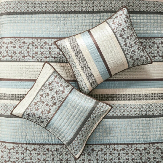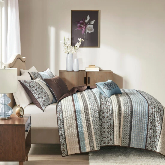 Make it easier to switch to rest mode in the evening with this Madison Park Harvard five-piece coverlet set. Featuring channel stitching for a dose of texture and character, this coverlet set has a poly jacquard face and polyester back for durability and comfort. This set is machine-washable for hassle-free wash days.