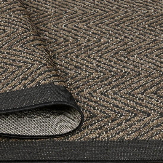 - Global inspired indoor/outdoor area rug flatweave with chevron texture
