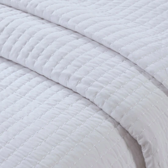 The Madison Park Jaxson Reversible Coverlet Set provides a simple and casual update to your bed. This solid white reversible coverlet features pick stitch channel quilting to keep the cotton-rich filling secure and create a cozy farmhouse look. Matching shams (1 in Twin/TwinXL) complement the coverlet to complete the reversible bedding set. This coverlet also has an antimicrobial treatment that provides built-in freshness protection, reducing the growth of odor causing bacteria to keep fabric lasting longer. Made from soft brushed microfiber, this reversible coverlet set is perfect for summer or as an extra layer in cold weather.