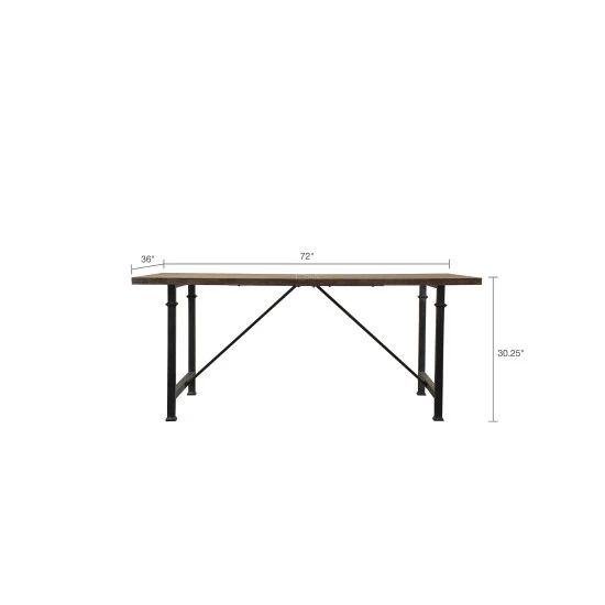 The alluring design of this dining table is defined in its rustic reclaimed finish. With its generous 72-inch length and durable metal frame, you are sure to make a great addition to your dining area. Assembly required.