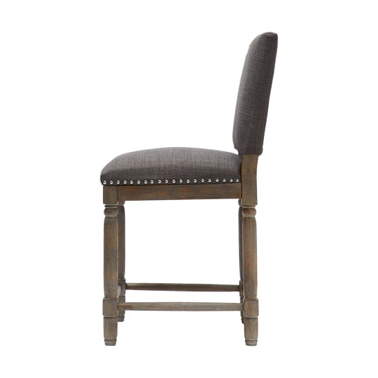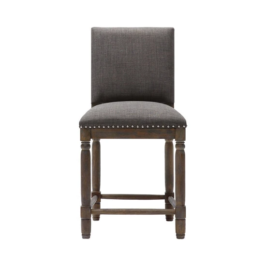 Turn an island into a casual eating area with this Madison Park Kagen stool. The counter-height base lifts you to the perfect height, and the tall backrest makes it easy to lean back. With its reclaimed grey birch legs, grey upholstery, and nailhead accents, this chair exudes rustic elegance.