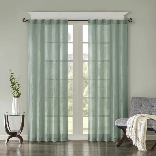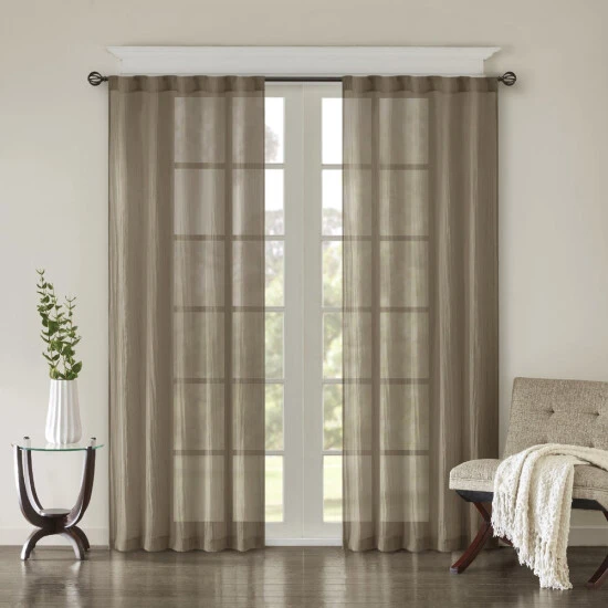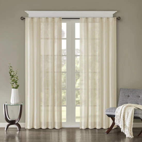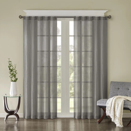 Ramp up your modern interior with this pair of curtain panels by Madison Park. The lightweight sheer fabric creates texture and filters light into your room for an airy feel. Fitted back tabs allow for a customized look, while the rod pocket header makes light work of installation.