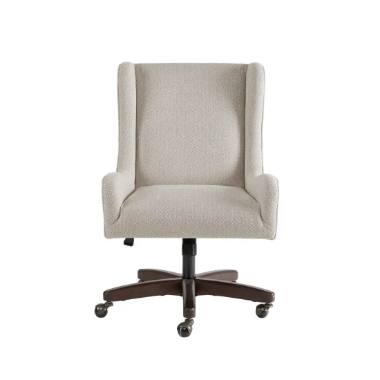 The Madison Park Klaus Office Chair adds a sophisticated element to your office space. This rolling office chair showcases rich cream-hued upholstery that is complemented with the Morocco wood finish on the star-shaped base, for an elegant contrast. The five caster wheels allows for smooth and easy mobility. With its high back and curved track arms, this office chair adds a chic and comfortable touch to your home office. Assembly is required and no tools are needed.