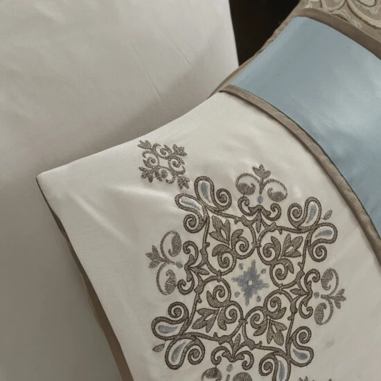 Enhance your bedroom ensemble with this exquisite seven-piece comforter set. This set includes a comforter, bedskirt, two shams, and three accent pillows to give your bed a complete chic look. Crafted from microfiber, this set is soft to the touch, and the paisley pattern and embroidered accents bring Old World charm to your room.