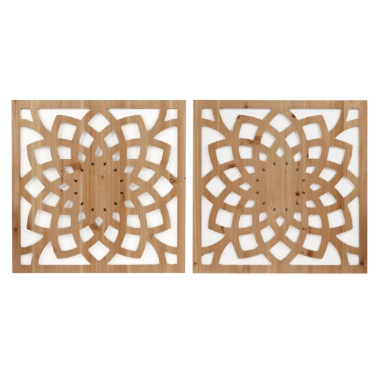 Add a global artistic touch to your home with the Madison Park Lotus Medallion Wood Wall Decor 2 Piece Set by Artist Emily Warne. Each square wall decor features a laser cut floral medallion design in a distressed natural wood color on a white base ground, creating great contrast for an intricate and eye-catching lotus design. The light MDF material makes it simple and easy to hang, while a Sawtooth fixture on the reverse of each piece allows you to add any amount of breath in between to fit any size wall or space. Comes as a two piece set, each piece measuring 20×20 inches and spot clean only.