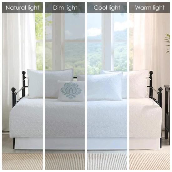 The Madison Park Mansfield 6 Piece Reversible Daybed Cover Set offers a charming cottage-inspired update to your guest bedroom. The daybed cover and shams flaunt a classic stitch pattern that creates a rich depth and texture on the face of the bedding set. A square decorative pillow with elegant embroidery and striped (solid) bed skirt add the finishing touches to the daybed set. This daybed cover also has an antimicrobial treatment that provides built-in freshness protection, reducing the growth of odor causing bacteria to keep fabric lasting longer.