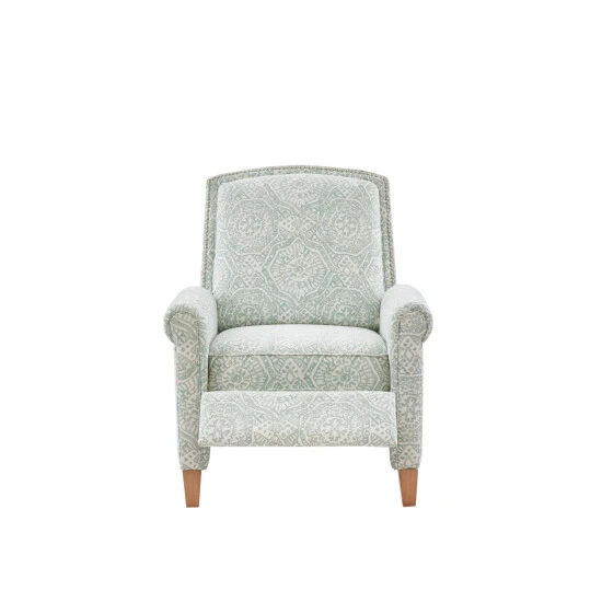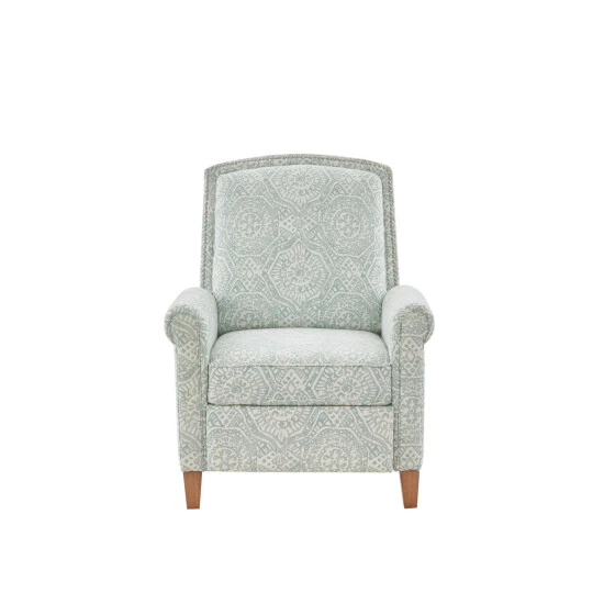 Enhance the comfort and chicness of your space with this Melissa recliner by Madison Park. This recliner features a frame made of solid wood and pine wood, giving it superior strength and the capacity to support 300 pounds. Its beautiful upholstery is made of microfiber material that’s soft to the touch and features an elegant design that lends beauty to your decor. A soft blue tone makes this recliner stand out, and its semi-firm seat and foam-filled back make it perfect for relaxing.