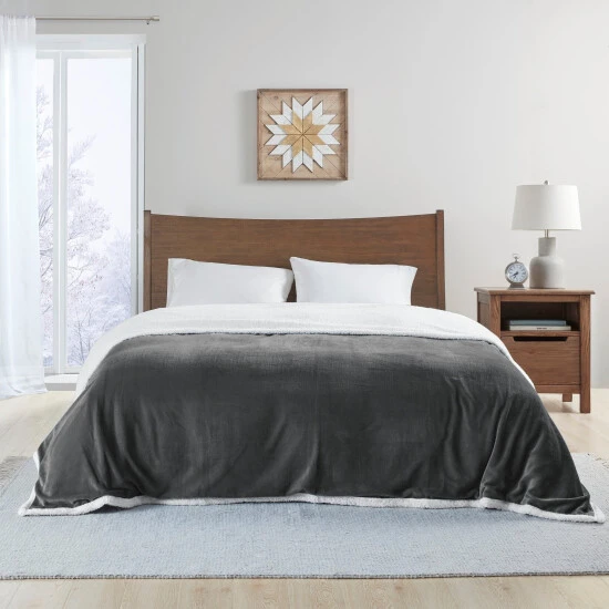 This plush blanket is made from a polyester microlight fabric for an irresistibly soft hand feel and reverses to berber for added warmth and comfort. The berber reverse creates a solid ivory border around the face of the blanket and adds extra loft.