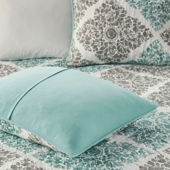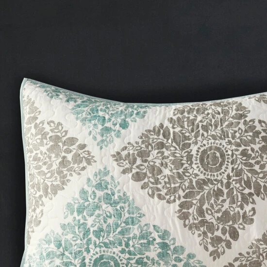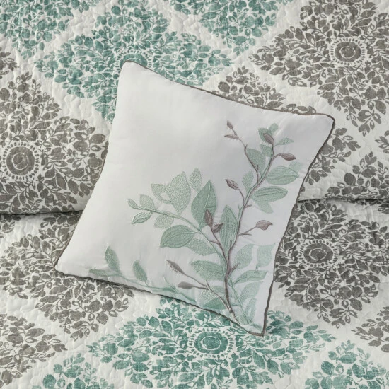 Spruce up your space with the Madison Park Montecito 6 Piece Reversible Coverlet Set. This unique pattern has a small leaf print inside each diamond that makes up this crisscross design. Pops of color give the perfect amount of color to add this collection into your neutral space. Three decorative pillows use embroidery and fabric manipulation for the perfect finishing touches to this collection. This bedding set is OEKO-TEX certified, meaning it does not contain any harmful substances or chemicals to ensure quality comfort and wellness. Β Items in the set may come in a rolled or compressed packaging, which will need to be fluffed up or steam ironed before use to remove wrinkles.