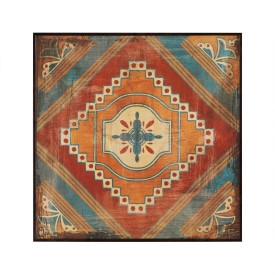 Incite curiosity by exhibiting this four-piece art set. Flaunting Moroccan-inspired abstract motifs in warm, vivid colors, this art set brings an exotic flair to your home office, living room, or bedroom. Slim dark frames highlight these vibrant art pieces and offer ready-to-display convenience.
