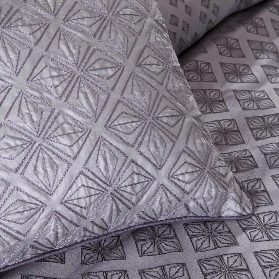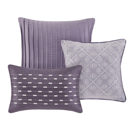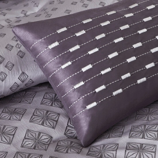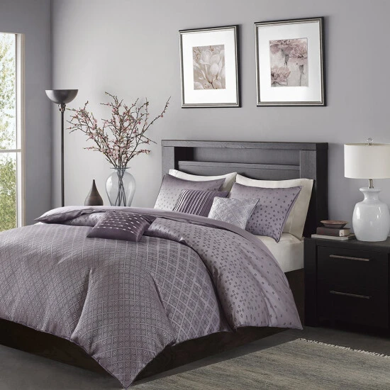 Curate a coordinating designer look on your bed without the work when you choose this duvet cover set. Six pieces, including shams and decorative pillows, pull in rich purple patterning with a contemporary look, and the woven jacquard fabric adds a unique texture reminiscent of sequins to spice up this bedding set.