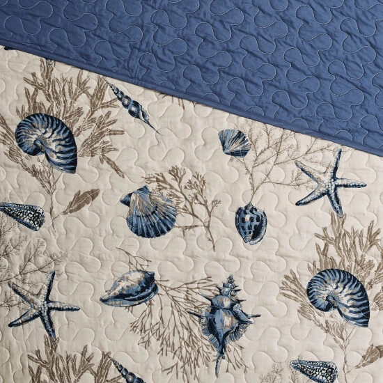 Transform your bedroom into a beautiful seaside resort with this cozy Madison Park Nantucket coverlet set. Made of soft brushed microfiber material, this luxurious comforter set displays exquisite coral reef motifs and blue seashell prints on a neutral-toned background to complement modern home decors.