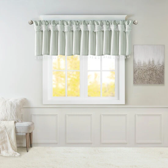 Give your home a decorator’s touch with the Madison Park Natalie Window Valance. Made from a faux silk fabric, this elegant window valance features a DIY twist tab top finish that creates rich deep folds, combined with a beautiful bead trim for an alluring charm. Added lining offers more privacy and a fuller appearance, while the luxurious sheen and rich charcoal tone provides a touch of sophistication to your decor. Easy to hang, this tab top valance updates any decor into subtle glamour. Hanging instructions are included. Fits up to a 2 inches diameter rod.