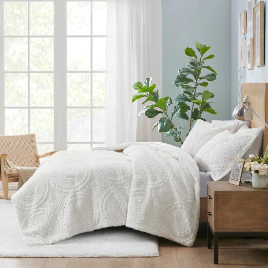 Update your bedroom with this Nova three-piece comforter set by Madison Park. Featuring an ultra-plush polyester construction, this ivory comforter keeps you warm without being overbearing. The embroidered medallion pattern on the comforter and shams adds interesting detail to your space.