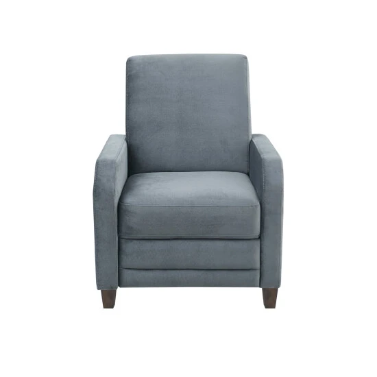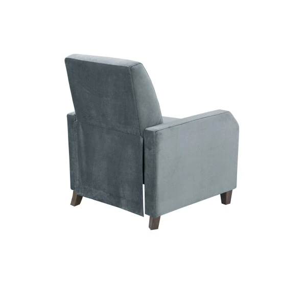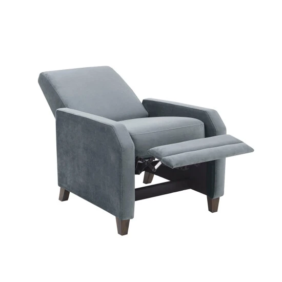 Find comfort and relaxation by kicking back in the Madison Park Orion Recliner. Upholstered in a soft, gray velvet fabric, this recliner chair features track arms and a reclining function that adjusts to two positions for maximum comfort. The dark coffee finish on the solid wood block feet adds a complementary touch to the transitional design. Some assembly is required.
