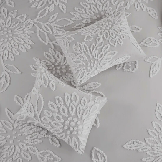 - Shabby chic comforter set in cotton tufted chenille floral details