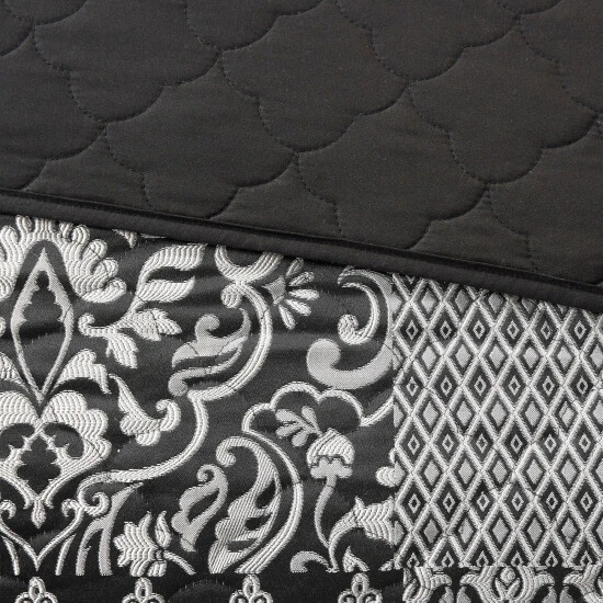 - Polyester jacquard and medallion design on top of coverlet with soft microfiber reverse side in black color