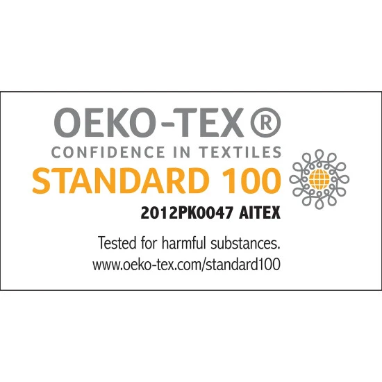 - Oeko-Tex Certified, includes no harmful substances or chemicals (# 2012PK0047)