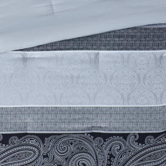 - Paisley and damask design in jacquard woven fabric on comforter in black and white, black and gray, white and gray colors