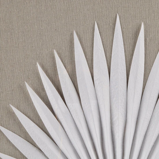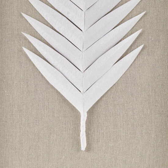- Handmande rice paper palms in off white on a soft linen ground