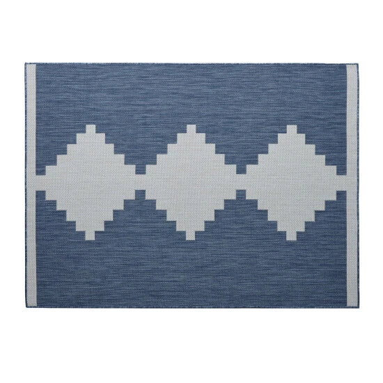 - Global inspired indoor/outdoor area rug flatweave with Modern Geo pattern
