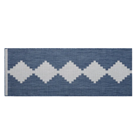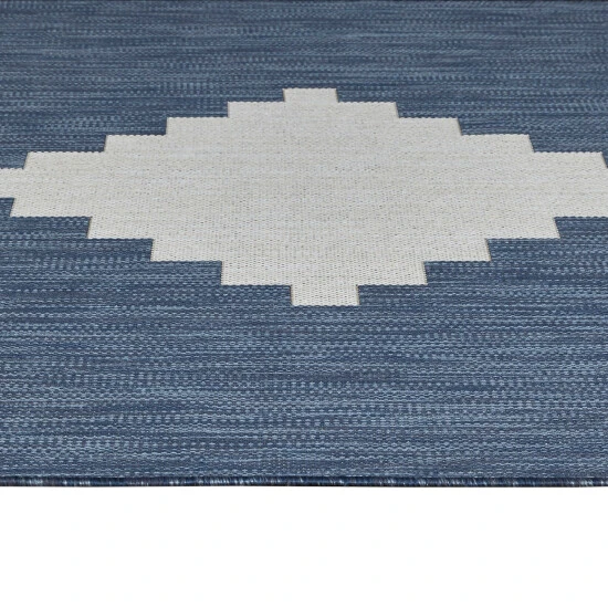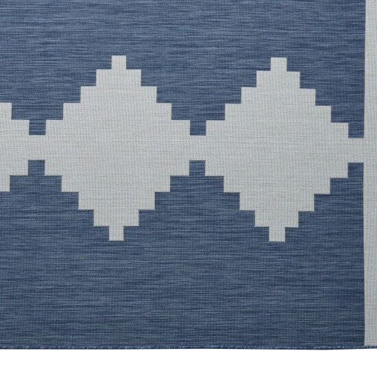 The Madison Park Stella Modern Geo Indoor/Outdoor Rug offers a unique and durable update to your home decor. Featuring a modern geo pattern in navy and white hues, this flatweave polypropylene area rug give your space a globally inspired touch. Stain and fade resistant, this indoor/outdoor rug is durable for all seasons and easy to clean.